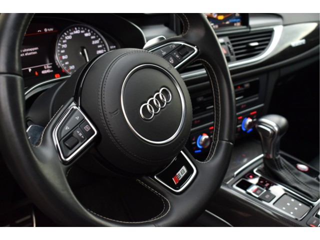 Graag presenteren wij u deze in nieuwstaat verkerende Audi S6. Een Audi wordt vaak gezien als een zakelijke auto, een auto die je het beste kunt vergelijken met een mooi maatpak; mooie lijnen en een charmant aantrekkelijk object zonder schreeuwerige uitstraling. Echter heeft de S6 iets speciaals, bij deze auto weet Audi een mooi maatpak te combineren met een setje sportkleding. De zakelijk sportieve uitstraling gecombineerd met een 4.0 TFSI met 420PK maakt dat dit een ware mannendroom is (ook een dame mag uiteraard deze auto komen bekijken!), de auto heeft zeer verfijnde rijeigenschappen en doet ook geen concessie op het gebied van comfort. Voorzien van geweldige opties zoals Full LED koplampen, panoramadak, BOSE audio, stoelverwarming en ventilatie, lane assist en meer. Mede door het start stop-systeem en cilinderuitschakeling is dit geen ouderwetse V8 te noemen, dit verfijnde blok brengt u rustig van A naar B en als het moet ook zeer snel! De auto komt van de 1e eigenaar en wordt geleverd met reservesleutel en volledige historie. Schroom niet en kom snel een kijkje nemen bij deze dijk van een auto!